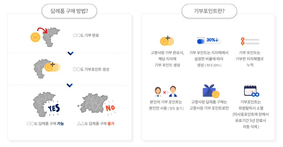 • 기부 → 포인트 적립 → 답례품 선택 → 배송 완료!