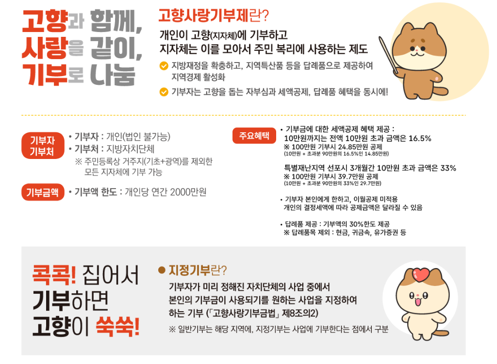 “2025 고향사랑기부제의 제도 설명부터 기부 방법, 세액공제, 특별재난지역 혜택, 지역별 답례품 추천까지 한 번에 정리! 세테크 + 지역응원 두 마리 토끼 잡는 실전 가이드”