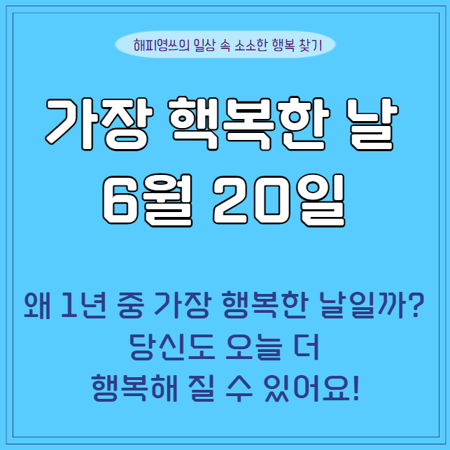 왜 하필이면 6월 20일인지, 그리고 이 날을 계기로 우리 일상에서 행복을 더 자주, 더 깊게 느끼는 방법까지 함께 나눠볼게요!