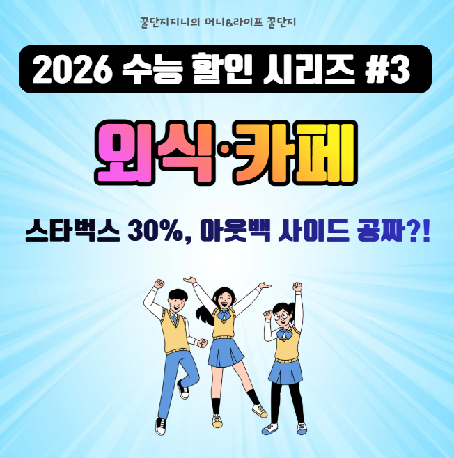 2026 수능 수험생을 위한 외식·카페 할인 정보! 스타벅스, 아웃백, 호텔 뷔페, 배스킨라빈스 등 브랜드별 혜택과 적용 조건을 정리한 실속형 가이드입니다.