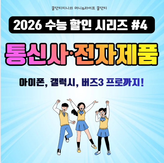 수험생이라면 놓치지 말아야 할 2026 수능 통신사 & 삼성전자 할인 혜택 총정리! 아이폰, 갤럭시 기기 할인부터 갤럭시 버즈3 프로 99,000원 구매 방법까지 한눈에 확인하세요.