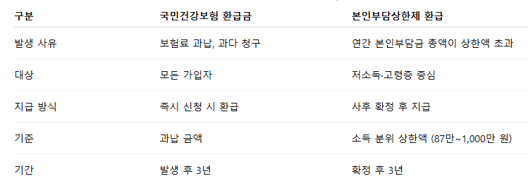 국민건강보험 환급금 vs 본인부담상한제 차이 📌