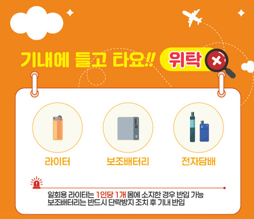 - 부탄가스, 라이터(1개만 가능), 스프레이 종류
