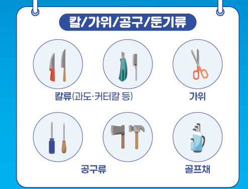 하지만 칼날이 긴 면도기나 접이식 칼, 작은 공구류 등 날이 있는 제품은 반입 금지예요. 이럴 땐 위탁 수하물로 보내는 게 안전해요.