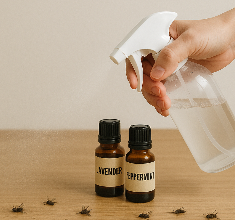 - 라벤더 오일, 페퍼민트 오일을 물에 희석해 분무기로 뿌려보세요.