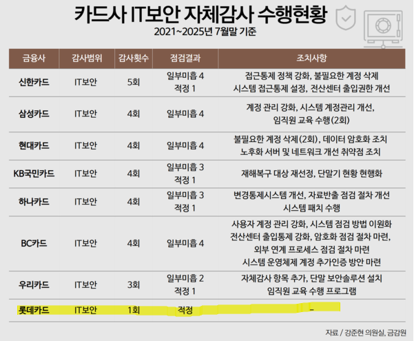<카드사 IT보안 자체감사 수행현황,출처:IT조선>