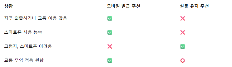 모바일 발급 추천 상황 vs 실물 유지 추천 상황