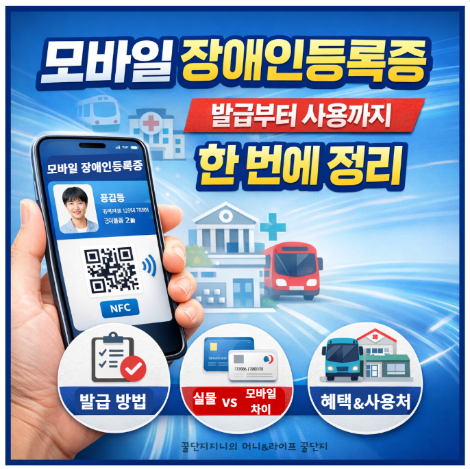 모바일 장애인등록증 발급 방법부터 실물 카드와의 차이, 사용처, 재발급 기준까지 실제 신청 전에 꼭 알아야 할 핵심 정보만 정리했습니다.