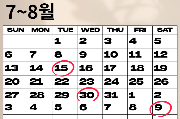 - 🔴 말복: 8월 9일 (토요일)