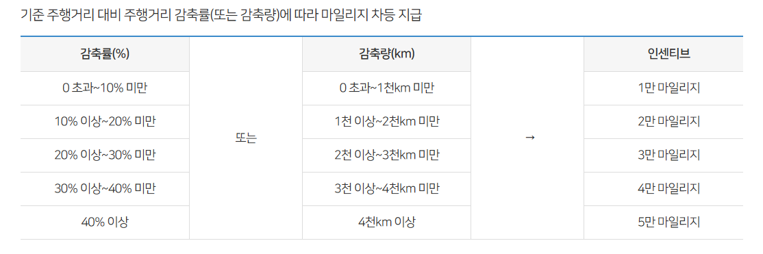 - 기준 주행거리 대비 실제 주행거리를 감축한 만큼 지급