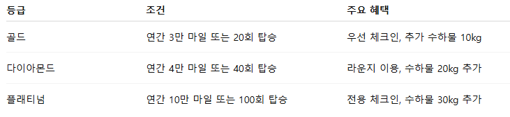 - 사용처: 항공권 구매, 좌석 승급, 제휴사 서비스 이용