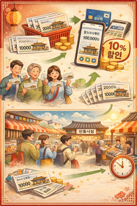 온누리 상품권 환급은 2026년 설 명절 기간 동안 전통시장에서 국산 신선 농축수산물을 구매하면 최대 30%를 온누리상품권으로 돌려받는 정부 지원 행사입니다. 설 장보기 비용을 줄이기 위한 실질적인 절약 방법으로, 최대 2만 원까지 환급받을 수 있습니다.