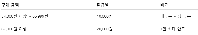 ✔️ 환급: 최대 2만 원 (구매액의 최대 약 30%)