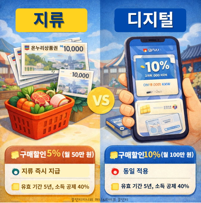 지류 vs 디지털 온누리 차이는 무엇인가요?