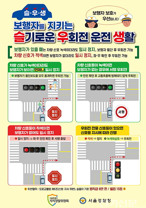 우회전 후 횡단보도 항상 보행자 우선 보행자 방해 시 단속