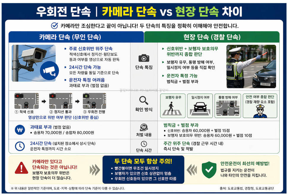 우회전 카메라 단속 vs 현장 단속 차이