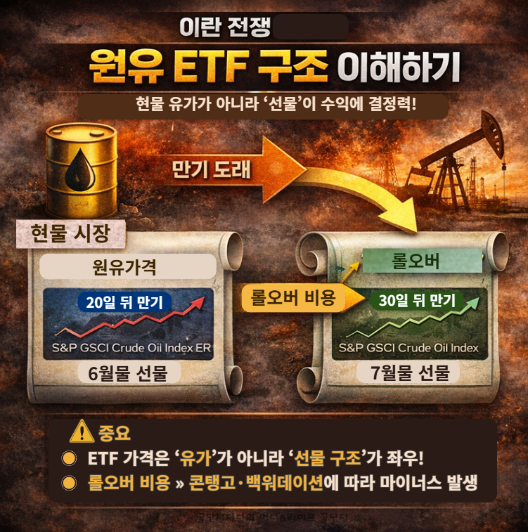 이 ETF들은 현물 유가가 아니라 선물 구조입니다.