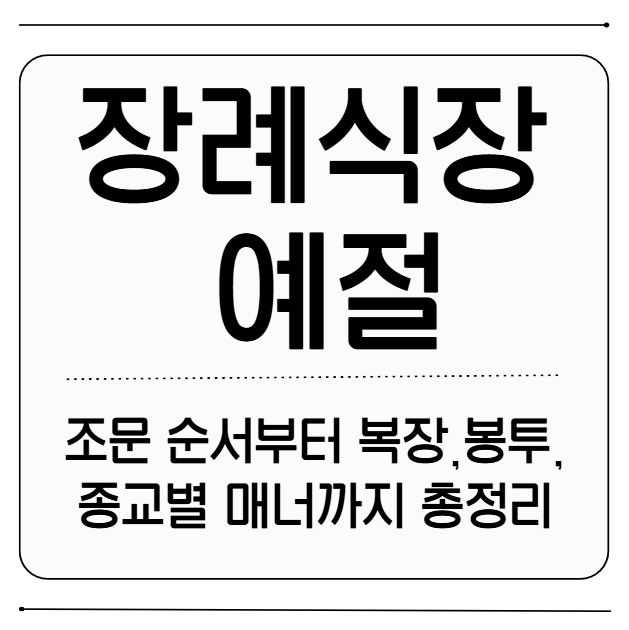 장례식장 방문 전 꼭 알아야 할 예절을 총정리했습니다. 조문 순서, 봉투 작성법, 종교별 장례 예절, 남녀별 복장, 근조화환까지. 어렵고 낯선 장례문화, 이 글 하나로 완벽 정리하세요.