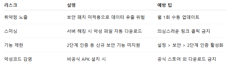 ✔️ 보안 패치 미적용에 따른 리스크도 존재합니다.