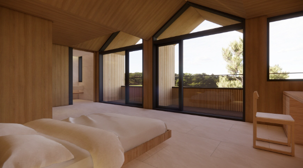- 침대 머리맡에 투명 천창 → 누워서 별 보기 가능