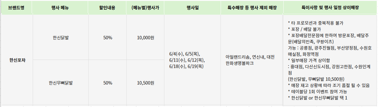 📌 주의사항: 일부 매장 제외,매장별 가격 상이,타 프로모션 중복 불가,포장/배달 불가(일부 전문점만 가능),