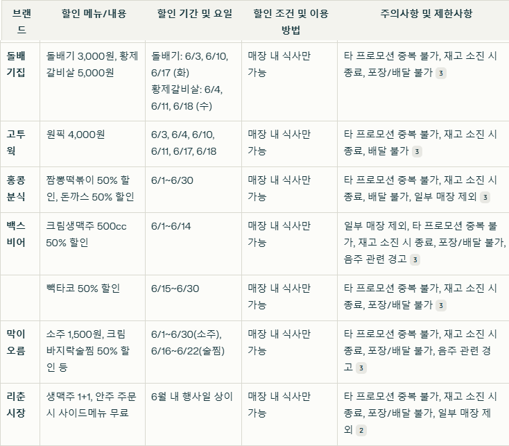 오늘은 백종원 대표님의 브랜드, 더본코리아의 2025년 6월 할인행사 소식을 알차게 정리해드릴게요! 🍜☕🍻