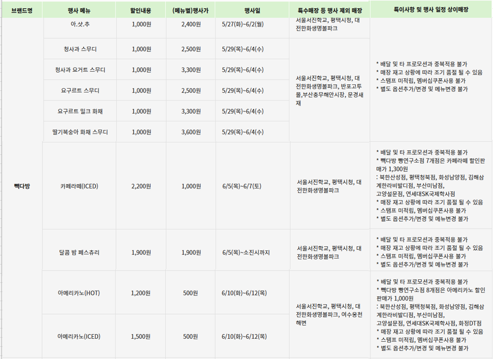 ☕ 백다방 - 인기 음료 릴레이 할인 프로모션 🧊