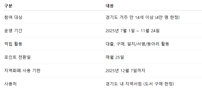 - 🏪 전환된 지역화폐는 경기도 지역서점에서 도서 구매에만 사용 가능