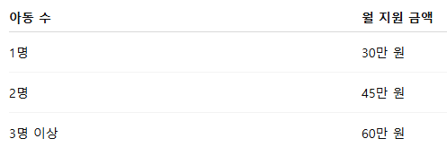 • 지급 시작일: 신청 다음 달부터 지급 시작
