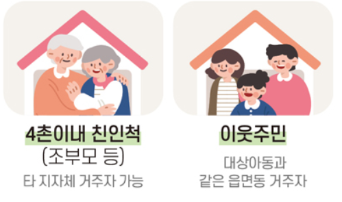 단, 양육자 거주지 기준으로 신청, 타 지역 조부모는 불가