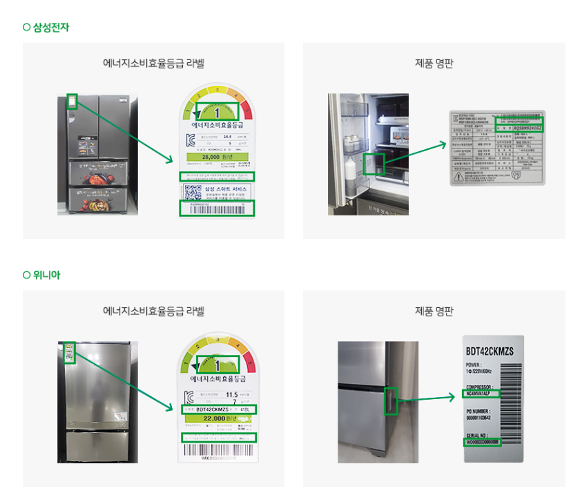 - 라벨 위치는 제조사·모델에 따라 다르므로 구매 시 판매처에 확인