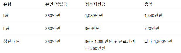 적립금: 본인 월 10만원 + 정부 월 10~30만원