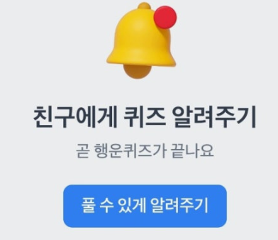 ※ 상금이 빠르게 소진되므로 퀴즈 알림이 도착하면 10초 이내에 참여하는 것이 유리합니다!