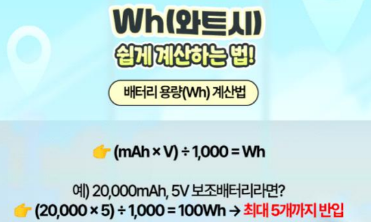 - ✈️ 보조배터리 용량 확인 (100Wh 이하)