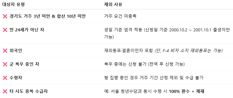 경기도 청년기본소득은 보편적 제도이긴 하지만, 아래에 해당된다면 신청이 제한되거나 거절될 수 있습니다.