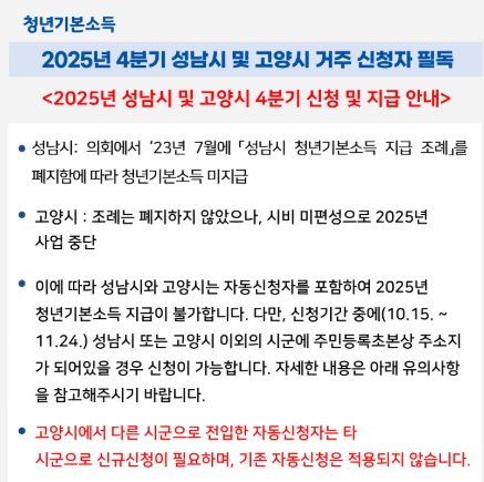 💡 참고: 2025년 기준, 성남시와 고양시 일부 지역은 청년기본소득 사업 일시 중단 가능성이 있습니다. 반드시 apply.jobaba.net에서 본인 거주 지역 대상 여부 확인 후 신청하세요.