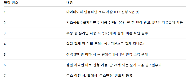 🌟 꿀팁 정리 – 실수 없이 100만 원 제대로 받는 법