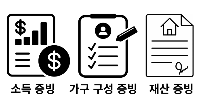 - 사업소득: 사업자등록증, 소득금액증명원, 현금영수증/세금계산서 등