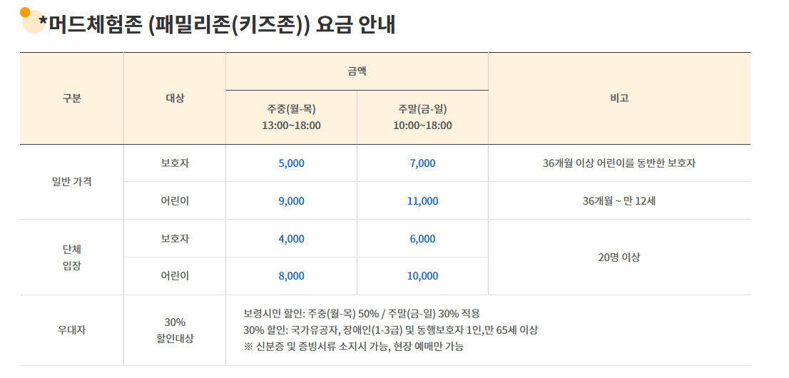 머드체험존 입장료 :
