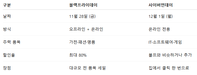 🎯 블랙프라이데이 vs 사이버먼데이