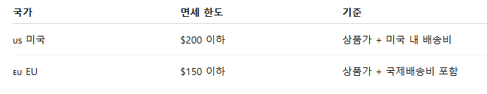 - 미국은 국제배송비 과세 제외
