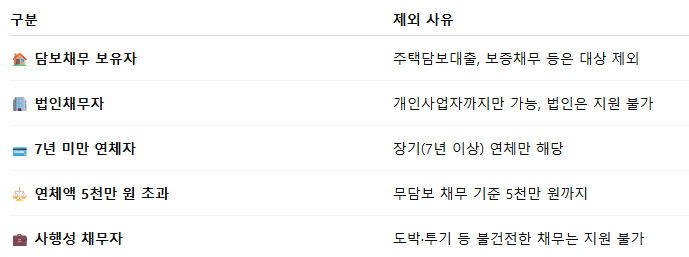 - 지원 대상: 7년 이상 장기 연체자
