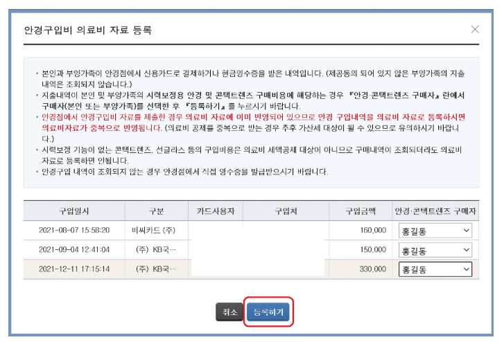 👉 안경점 영수증(시력 교정용 명시) 또는 카드 명세서 업로드