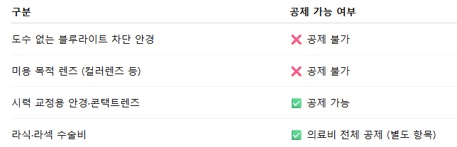 - 제외 대상: 선글라스, 미용 목적 안경, 블루라이트 차단 안경 등