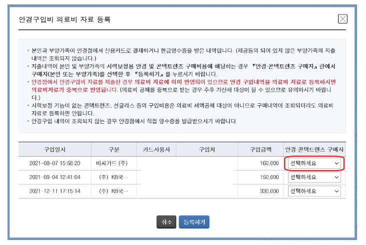 👉 “안경/콘택트렌즈 구입비” 선택