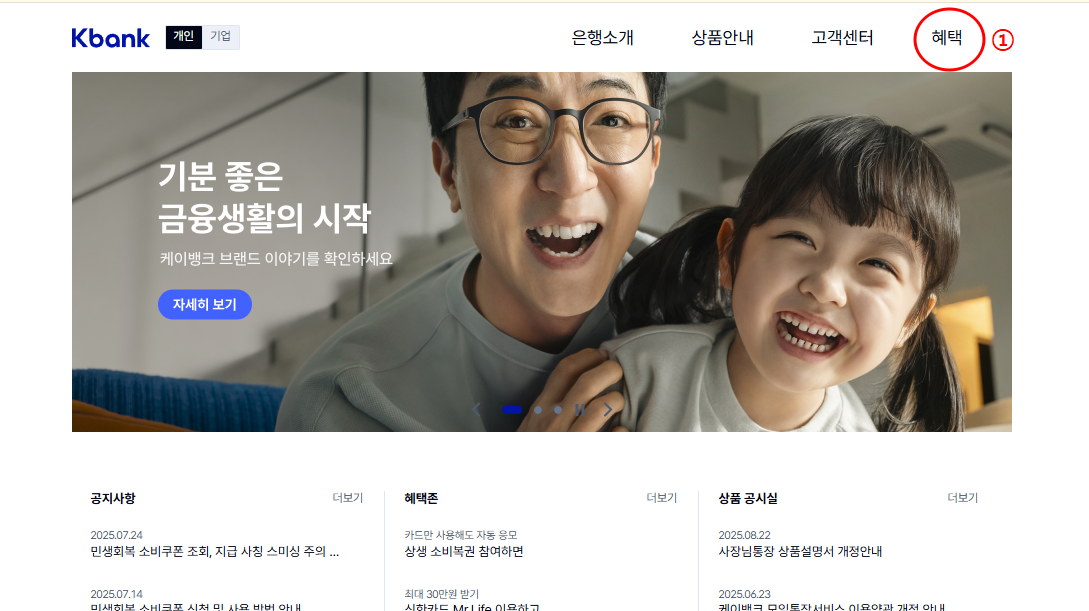 1. 케이뱅크 홈페이지 또는 앱 접속