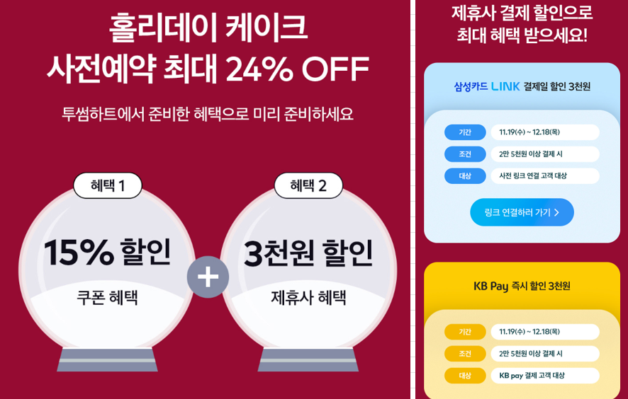 크리스마스 케이크 예약 시 통신사 멤버십이나 카드 제휴 할인을 챙기면 정말 큰 금액을 절약할 수 있어요 👍