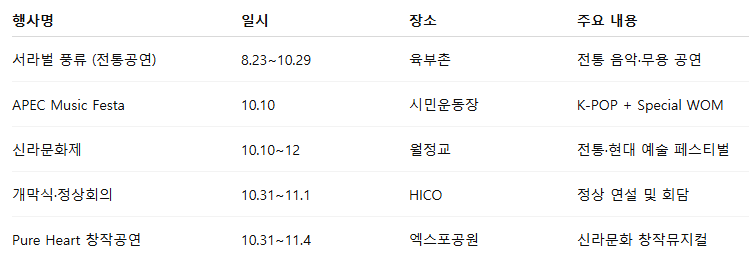 ✨ APEC 기간 한정 이벤트와 공연 소식은