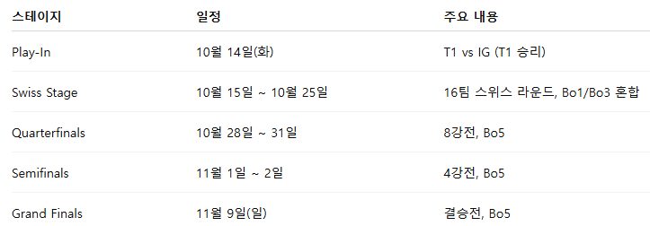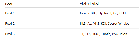 - 경기 형식: 모든 시리즈 Bo3 또는 Bo5, Fearless Draft 적용 (재사용 금지 챔피언 드래프트)