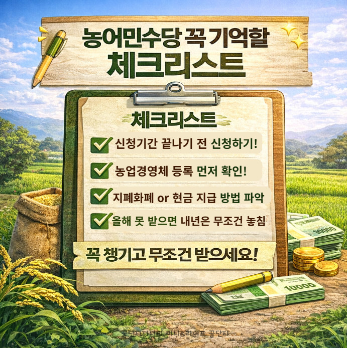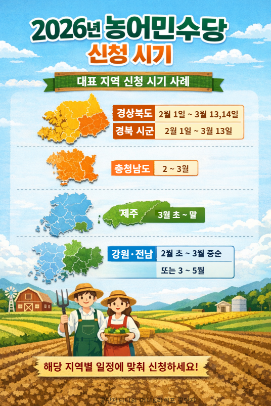 2026년 농어민수당 신청 시기, 자격, 지급금액, 지역별 차이와 신청 전 반드시 알아야 할 판단 기준을 한 번에 정리했습니다.